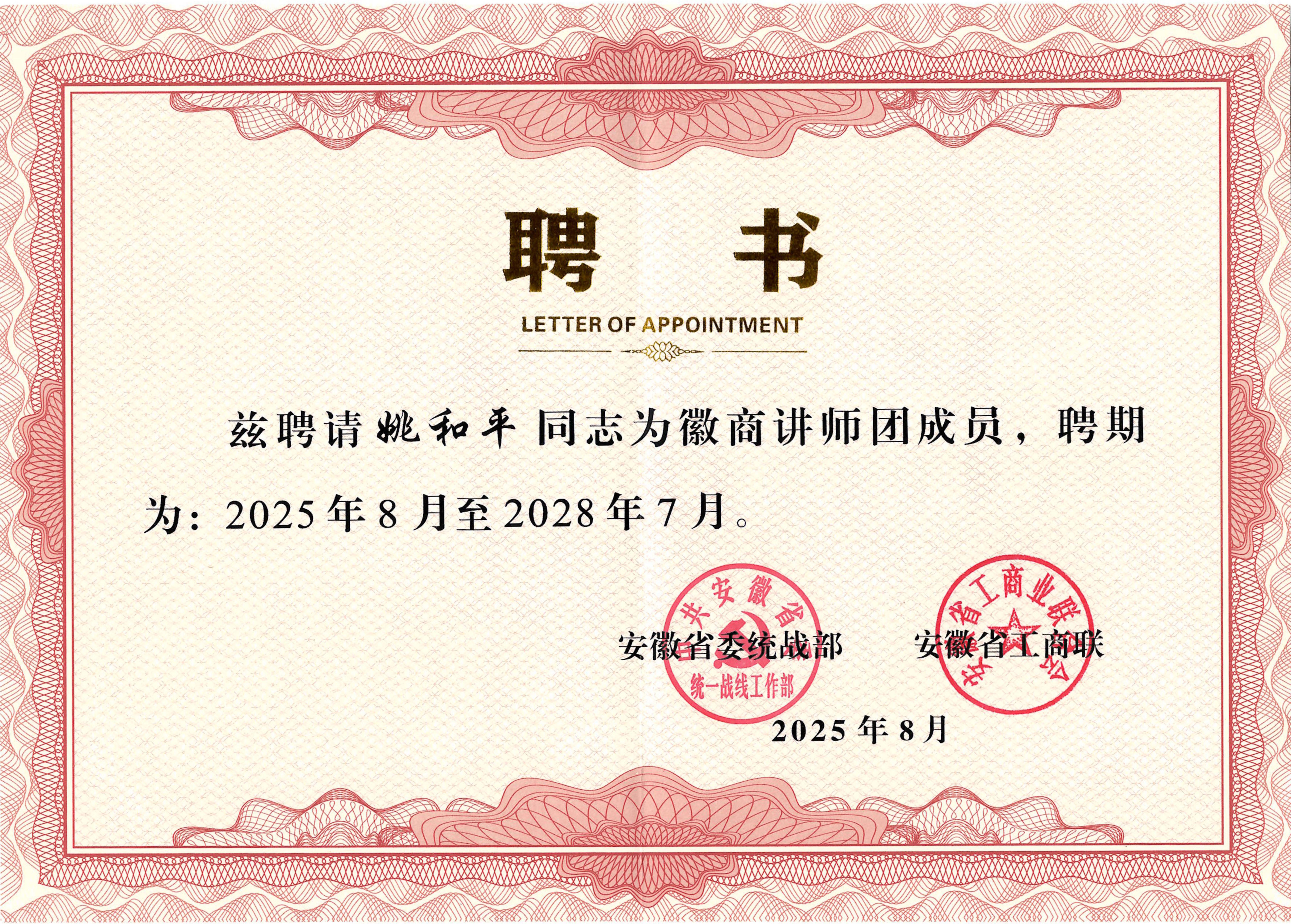 安利股份(300218.SZ)董事長姚和平獲聘徽商講師團(tuán)首批成員