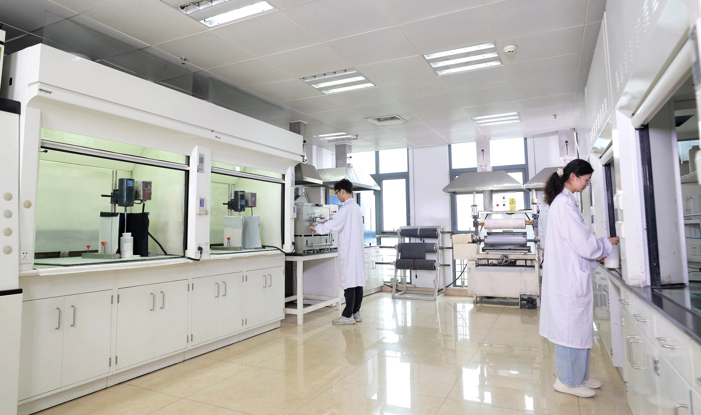 公司擁有國際一流水平的檢測分析平臺,配備有先進的材料VOC測試機、視覺放大和測色儀、氣相色譜質譜聯用儀、液相色譜儀、ICP光譜儀、紅外光譜分析儀、差示掃描量熱儀、動態熱機械分析儀、微機控制電子萬能試驗機、恒溫恒濕試驗機、超低溫耐寒測試儀、表面耐光耐磨牢度試驗機、柯尼卡美能達分光比色儀、數碼光學顯微鏡、阻燃實驗室等國際領先水平的檢驗分析儀器和設施,有效滿足對聚氨酯樹脂和聚氨酯合成革物性、化性,以及甲醛、重金屬、六價鉻、鄰苯二甲酸酯等環保性能的檢測分析。是同行業檢測、分析設備儀器較為齊全、先進的品質控制檢測中心之一。